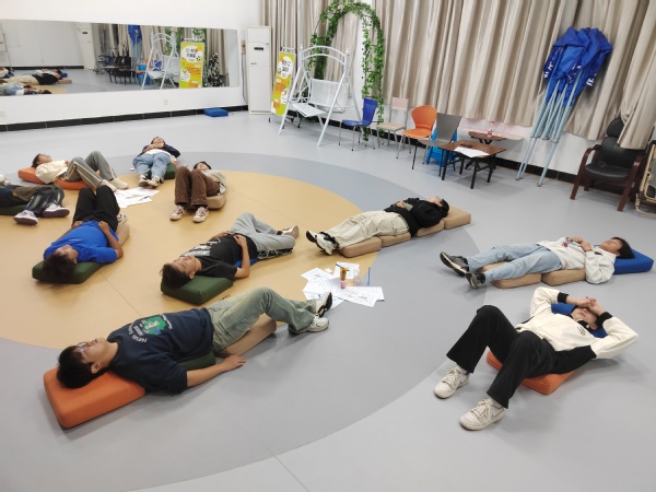 在热身破冰环节,师生共同开展拓展训练热身游戏——松鼠与大树,通过扮演不同角色、承担不同任务,锻炼反应能力,快速打破团队坚冰,营造团队氛围,凝聚团队合力。在压力测试环节,师生共同开展压力扫描测试,通过在身体扫描图上标注不舒适部位,评估压力对身体产生的影响。在压力疏导环节,师生共同分析面临的压力,进行组内分析讨论,运用头脑风暴,思考总结缓解压力的方法,再进行冥想放松训练,全程回顾总结本次辅导培训。参训本研学生表示,通过本次心理辅导培训,不仅让自己敞开心扉,诉说苦闷,直面压力,也让自己能够进一步认识自我,理好思绪,向着目标勇往直前、奔赴山海。