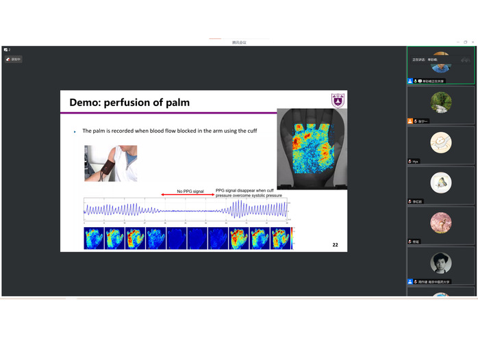 2024年12月8日晚19:30,由江苏省智慧中医药健康服务工程研究中心主办、304am永利集团官网304am永利集团官网承办的第七期中医药人工智能学术沙龙在腾讯会议线上举行。此次学术沙龙特邀南京大学智能科学与技术学院教授单彩峰,做了题为“Camera-based physiological measurement”的学术报告。青年教师和研究生参加活动。活动由院长周作建主持。